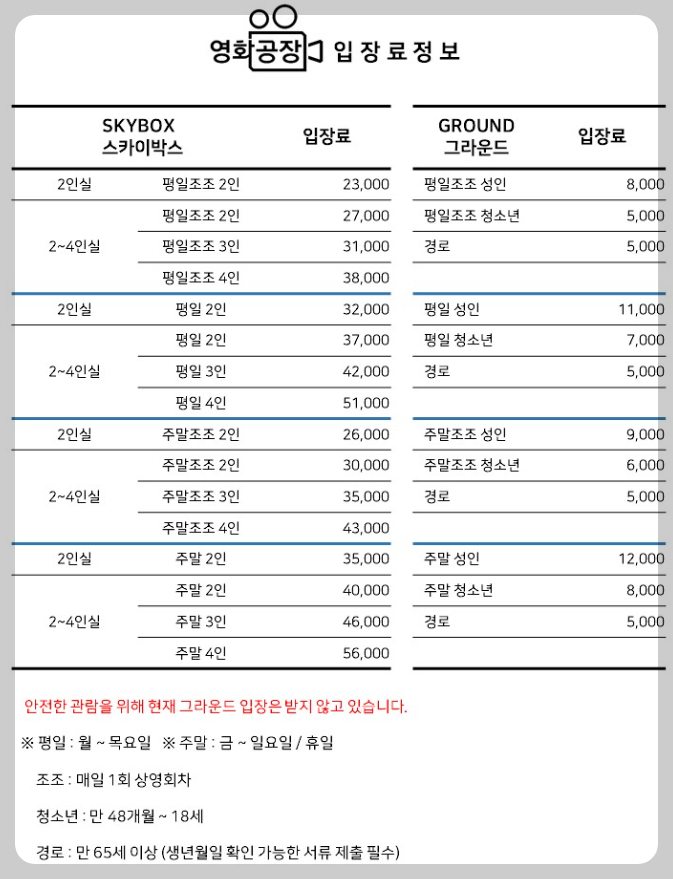 스카이박스와 그라운드 가격이 이런데..
