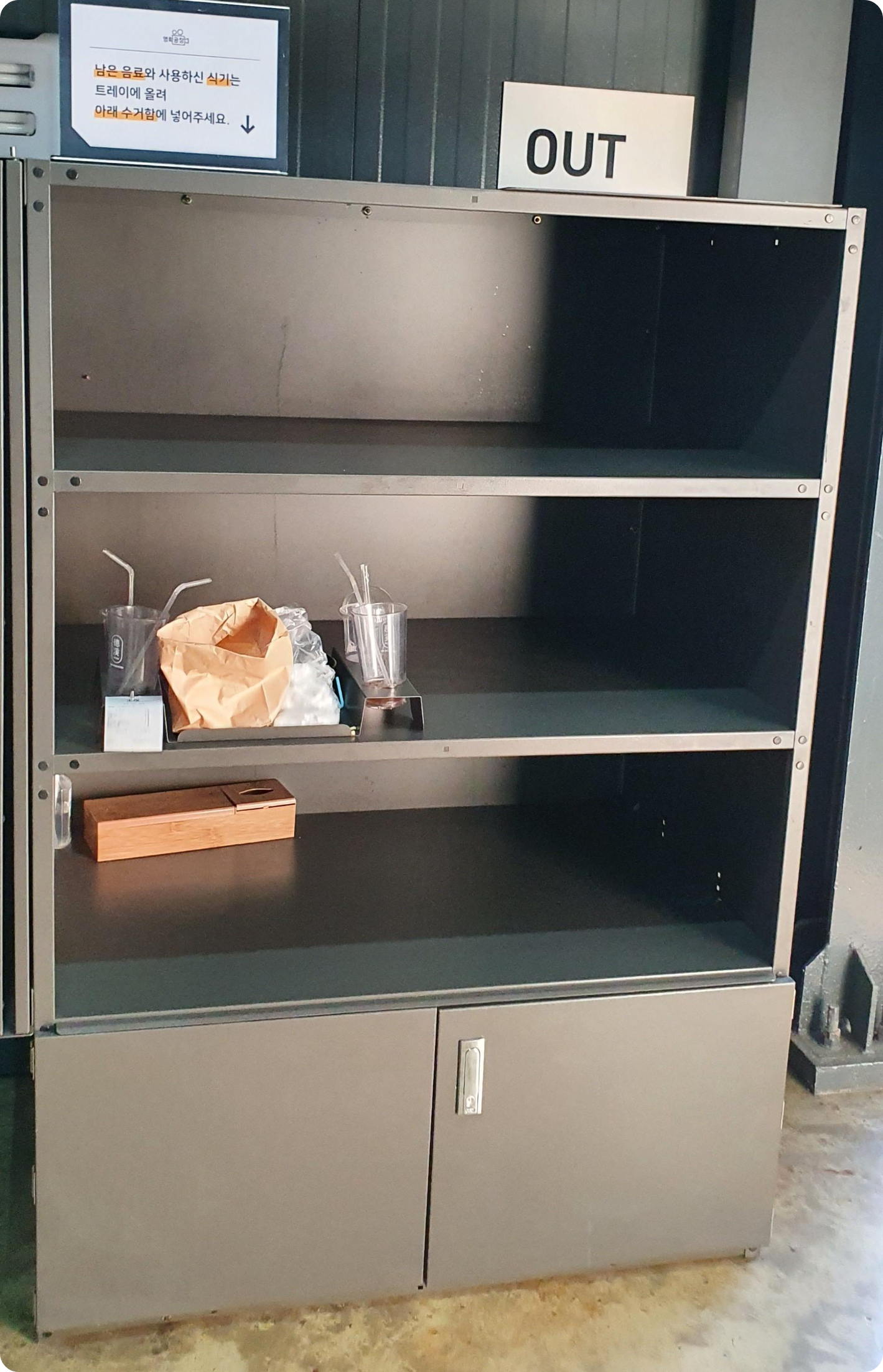 그렇게 먹고 보고 나와서 수거함에? 나두면 끝!? 땡!?