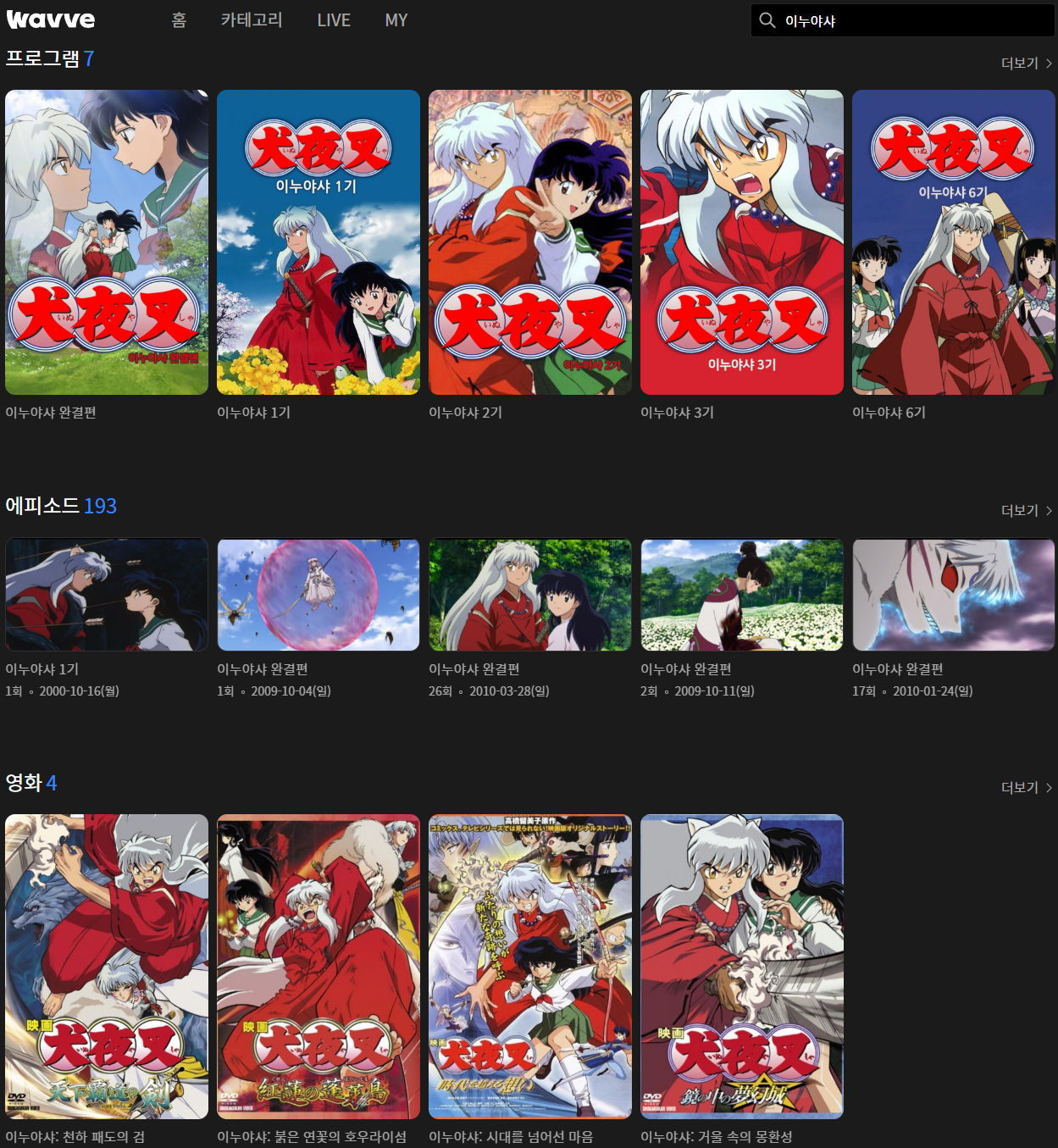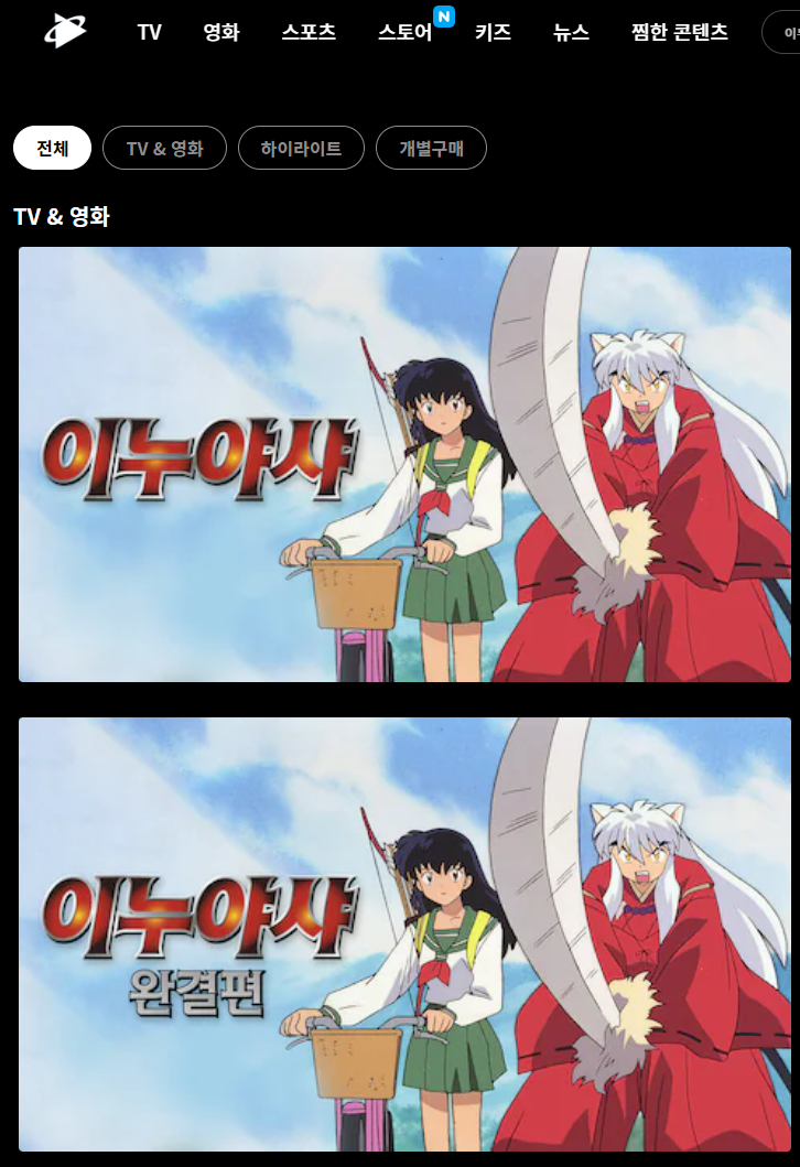이누야샤 7기, 이누야샤 완결편 더빙판 합법적으로 볼 수 있는 곳입니다.